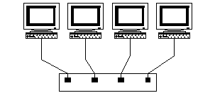 Рис. 9.35 Внешний вид концентратора На рис. 9.3 показан внешний вид концентратора Концентраторы поддерживают технологию plug and play и не требуют какой-либо установки параметров. Необходимо просто спланировать свою сеть и вставить разъемы в порты хаба и компьютеров. Планирование сети с хабомПри выборе места для установки концентратора примите во внимание следующие аспекты: