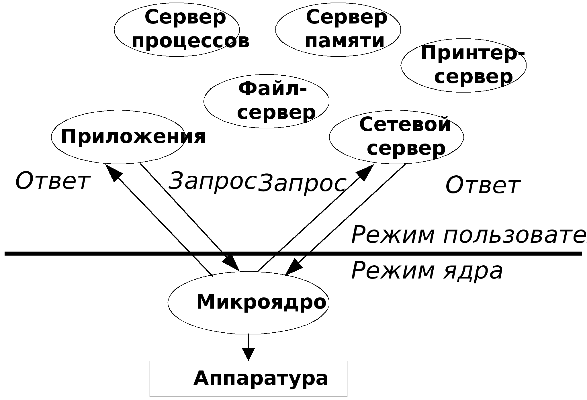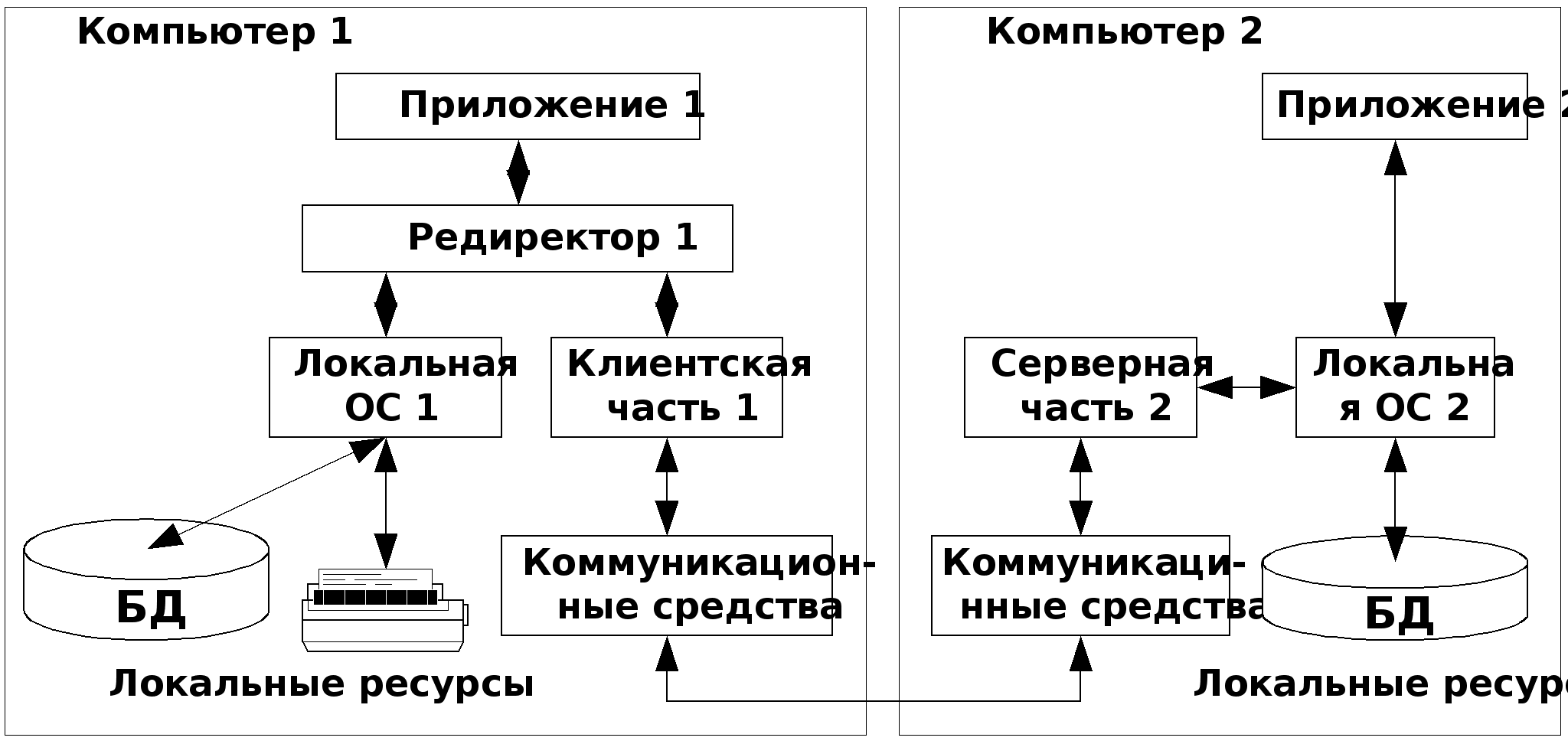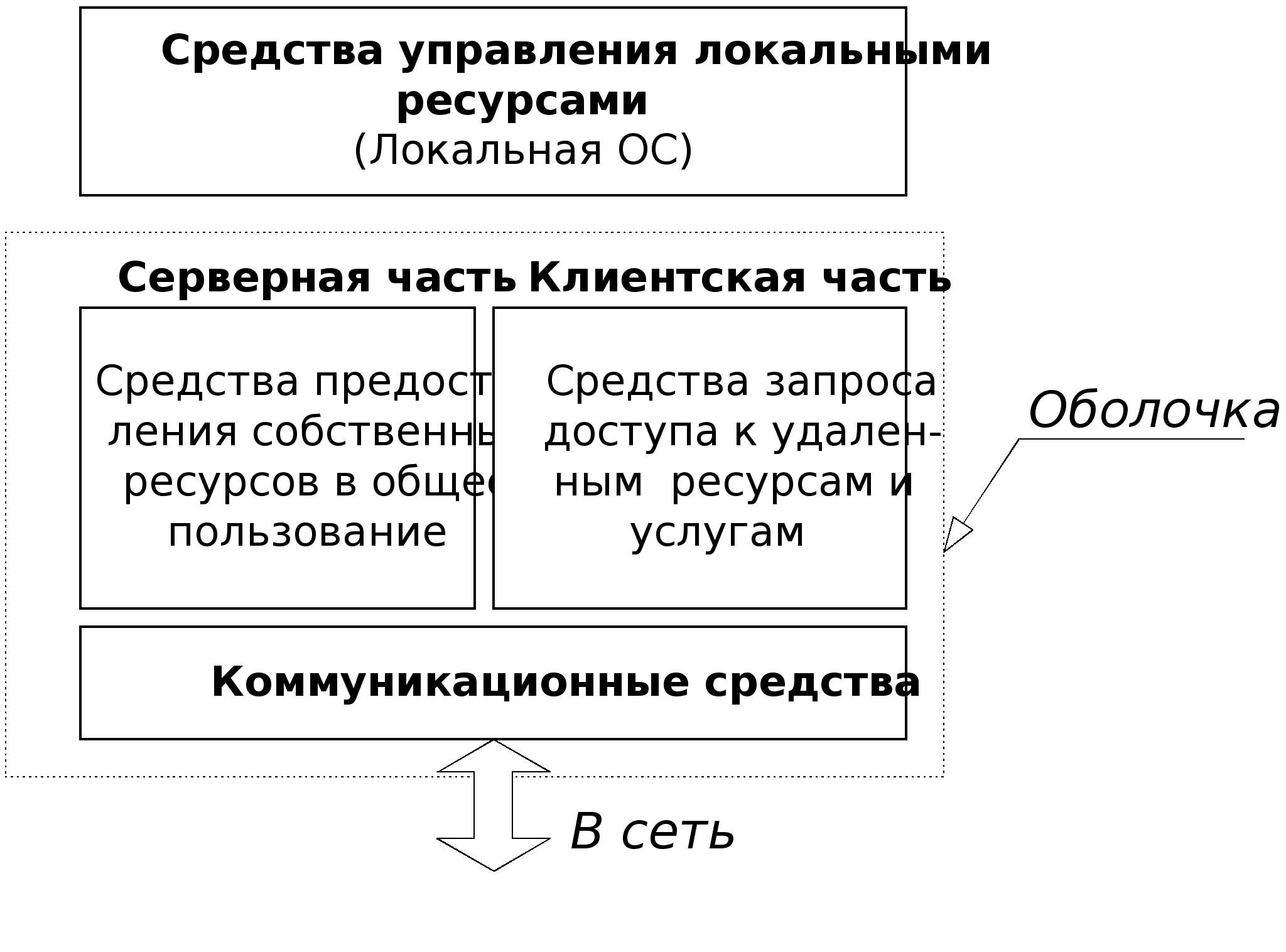 Рис. 7.24 Структура сетевой ОС В соответствии со структурой, приведенной на рис. 7.1, в сетевой операционной системе отдельной машины можно выделить несколько частей.