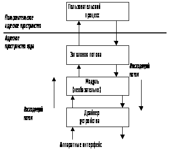 Рис. 7.31 Простая форма потокового интерфейса Одним из достоинств ОС UNIX является то, что система базируется на небольшом числе интуитивно ясных понятий. С самого начала ОС UNIX замышлялась как интерактивная система. Другими словами, операционная система UNIX предназначена для терминальной работы. Чтобы начать работать, человек должен "войти" в систему, введя со свободного терминала свое учетное имя (account name) и, возможно, пароль (password). Человек, зарегистрированный в учетных файлах системы и, следовательно, имеющий учетное имя, называется зарегистрированным пользователем системы. Регистрацию новых пользователей обычно выполняет администратор системы. Пользователь не может изменить свое учетное имя, но может установить и/или изменить свой пароль. ПрограммыОС UNIX одновременно является операционной средой использования существующих прикладных программ и средой разработки новых приложений. Новые программы могут писаться на разных языках (Фортран, Паскаль, Модула, Ада и др.). Однако стандартным языком программирования в среде ОС UNIX является язык Си (который в последнее время все больше заменяется на Си++). Это объясняется тем, что, во-первых, сама система UNIX написана на языке Си, а, во-вторых, язык Си является одним из наиболее качественно стандартизованных языков. Ядро ОС UNIXКак и в любой другой многопользовательской операционной системе, обеспечивающей защиту пользователей друг от друга и защиту системных данных от любого непривилегированного пользователя, в ОС UNIX имеется защищенное ядро, которое управляет ресурсами компьютера и предоставляет пользователям базовый набор услуг. К основным функциям ядра ОС UNIX принято относить следующие.