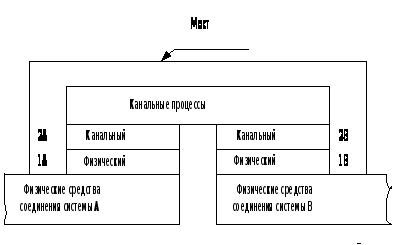 Рис. 9.36 Структура моста В соответствии с базовой эталонной моделью взаимодействия открытых систем мост описывается протоколами физического и канального уровней, над которыми располагаются канальные процессы. Мост опирается на пару связываемых им физических средств соединения, которые в этой модели представляют физические каналы. Мост преобразует физический (1A, 1B) и канальный (2A, 2B) уровни различных типов (рис. 9.4). Что касается канального процесса, то он объединяет разнотипные каналы передачи данных в один общий. Мост (bridge), а также его быстродействующий аналог – коммутатор (switching hub), делят общую среду передачи данных на логические сегменты. Логический сегмент образуется путем объединения нескольких физических сегментов (отрезков кабеля) с помощью одного или нескольких концентраторов. Каждый логический сегмент подключается к отдельному порту моста/коммутатора. При поступлении кадра на какой-либо из портов мост/коммутатор повторяет этот кадр, но не на всех портах, как это делает концентратор, а только на том порту, к которому подключен сегмент, содержащий компьютер-адресат. Мосты могут соединять сегменты, использующие разные типы носителей, например 10BaseT (витая пара) и 10Base2 (тонкий коаксиальный кабель). Они могут соединять сети с разными методами доступа к каналу, например сети Ethernet (метод доступа CSMA/CD) и Token Ring (метод доступа TPMA). Различие между мостом и коммутаторомРазница между мостом и коммутатором состоит в том, что мост в каждый момент времени может осуществлять передачу кадров только между одной парой портов, а коммутатор одновременно поддерживает потоки данных между всеми своими портами. Другими словами, мост передает кадры последовательно, а коммутатор параллельно. Мосты используются только для связи локальных сетей с глобальными, то есть как средства удаленного доступа, поскольку в этом случае необходимость в параллельной передаче между несколькими парами портов просто не возникает.