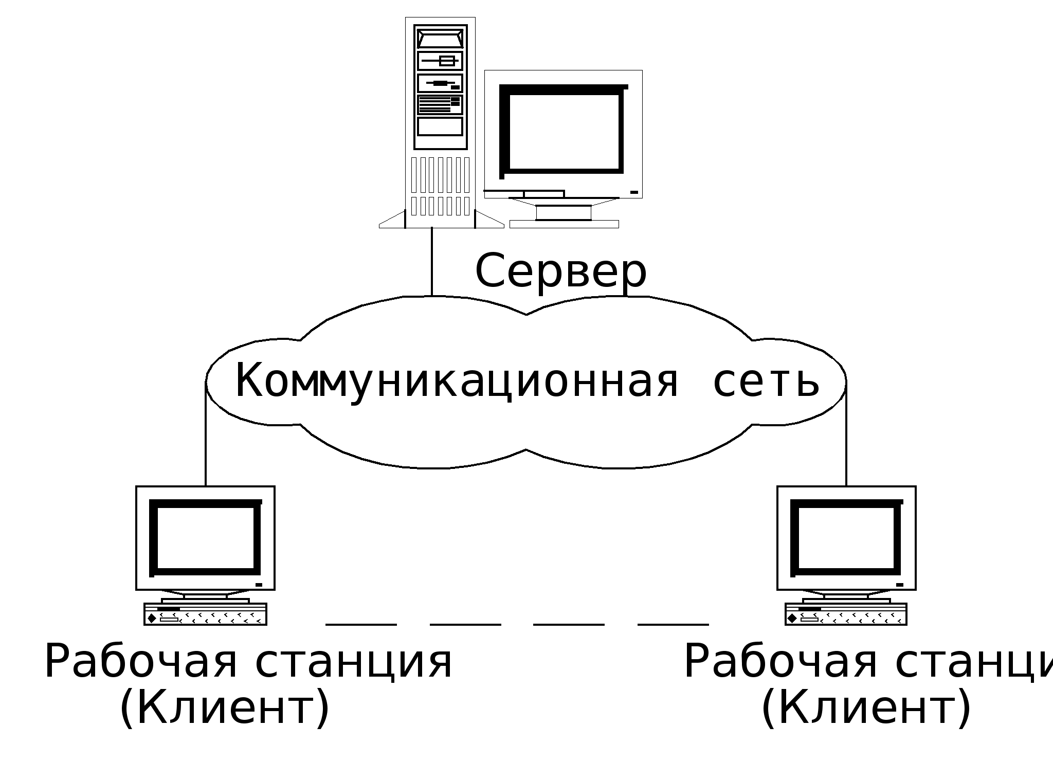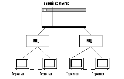 Рис. 1.3 Архитектура терминал – главный компьютер Рассматриваемая архитектура предполагает два типа оборудования: