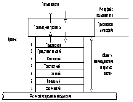 Лекция 2.Семиуровневая модель OSIДля единого представления данных в сетях с неоднородными устройствами и программным обеспечением международная организация по стандартам ISO (International Standardization Organization) разработала базовую модель связи открытых систем OSI (Open System Interconnection). Эта модель описывает правила и процедуры передачи данных в различных сетевых средах при организации сеанса связи. Основными элементами модели являются уровни, прикладные процессы и физические средства соединения. На рис. 2.1 представлена структура базовой модели. Каждый уровень модели OSI выполняет определенную задачу в процессе передачи данных по сети. Базовая модель является основой для разработки сетевых протоколов. OSI разделяет коммуникационные функции в сети на семь уровней, каждый из которых обслуживает различные части процесса области взаимодействия открытых систем.