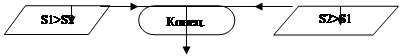 Program zadacha_6; Var r,a,s1,s2:real; Begin Write('r1='); Readln(r); Write('a1='); Readln(a); s1:=1/(2*r*r*(a-sin(a))); Writeln('s1=',s1:10:14); Write('r2='); Readln(r); Write('a2='); Readln(a); s2:=1/(2*r*r*(a-sin(a))); Writeln('s2=',s2:10:14); Readln; If s1>s2 then Writeln('s1>s2') Else Writeln('s2>s1') end. Блок схема.
