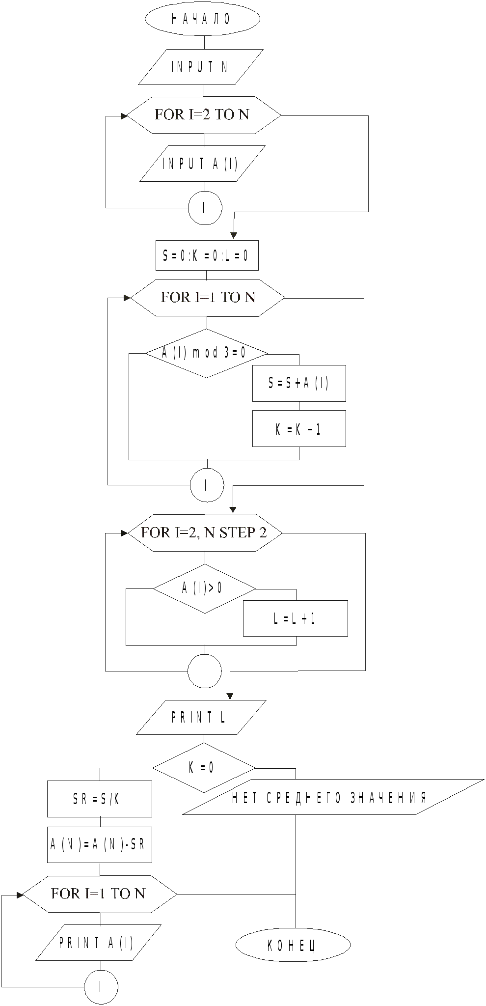 конец INPUT “Введите L”; L P=1 FOR j=1 TO L P=P(2j+l)/(j+2) NEXT j PRINT “P=”; P END