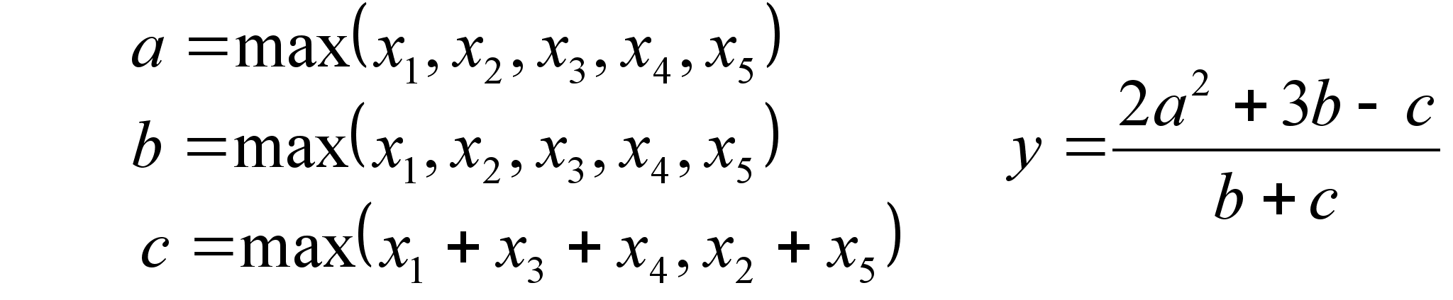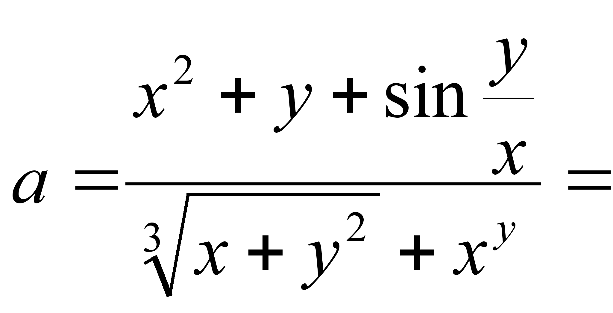 a=(x^2+y+SIN(y/x))/(x+y^2)^(1/3)+x^y; b=(x+6y)^(1/4)/SIN(1/y)