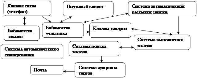 Прогнозы развития порталов. Слияние серверов приложений и серверов данных, использование XML управление системой баз данных. Процедура осуществления бизнес – торгов. 1 Первичные торги или аукционы размещения состояния · Размещение товара · Реализация прямого аукциона · Формирование системы отчетности по продажам 2 Вторичные торги. Размещение мелких и средних товаров удовлетворяющие лучших заявок. Заявка считается проданной, если есть: · Модель товара · Размер партии товара · Цена товара Внебиржевая система состояний (функционирование): · Функциональный блок · Поисковый · Торговый · Коммуникационный Основа внебиржевого товара – многоуровневый каталог товаров. Заявка состоит: · Вид заказа товара · Модель товара 1. Почтовый клиент (почта) · Размер партии товара · Базовая цена и условия поставки товара · Ссылка на личную карточку фирмы · Информационная поддержка товара Продавец берет на себя функции биржи. Функционная модель внебиржевой системы: