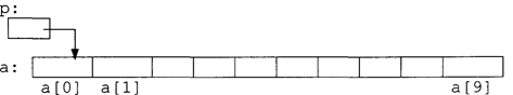 Запис а[і] посилає нас до і-му елемента масиву. int *р; р=&а[0]; /* р вказує на нульовий елемент а або містить адресу елемента а[0] */