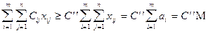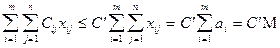 Введение этого условия приводит к открытой транспортной модели. Теорема 1. Любая транспортная задача, у которой суммарный объем запасов совпадает с суммарным объемом потребностей, имеет решение. 2.1. Закрытая модель транспортной задачи Для доказательства теоремы необходимо показать, что при заданных условиях существует хотя бы один план задачи и линейная функция на множестве планов ограничена. Доказательство. Пусть Тогда величины xij = aibj /M (i = 1,2,3, ... m; j = 1,2,3, ..., n) являются планом, так как они удовлетворяют системе ограничений ( 2 ) и ( 3 ) . Действительно, подставляя значения в (2) и (3) , находим Выберем из значений Cij наибольшее C¢ = max Cij и заменим в линейной функции ( 1 ) все коэффициенты на C¢ тогда, учитывая ( 2 ) , получим Выберем из значений Cij наименьшее C¢¢=min Cij и заменим в линейной функции все коэффициенты на C¢¢ ; тогда, учитывая ( 2 ) имеем Объединяя два последних неравенства в одно двойное , окончательно получаем C¢¢M ? Z ? C¢ M, т. е. линейная функция ограничена на множестве планов транспортной задачи. 2.2. Открытая модель транспортной задачи Транспортная задача,