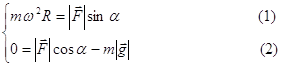 работы). После того как введена формула Для физиков важен распределительный закон При решении векторных уравнений наряду с графическим методом используется метод проекций (координатный). Рассмотрим использование данного метода при решении задачи [8]: Задача 1: Конический маятник массой m вращается в горизонтальной плоскости. Найти угловую скорость вращения и силу натяжения нити, если её длина l, а угол, который она составляет с вертикалью, равен α. Решение: на маятник действует две силы – сила