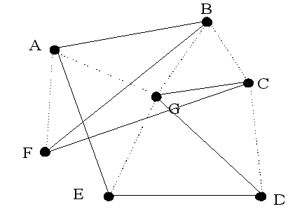 На рисунке показан граф с 7 вершинами; сплошные линии- гамильтонов цикл для данного графа пунктир ребра по которым не прошла кривая гамильтонова цикла. В качестве Боба и Алисы могут выступать компьютер и пластиковая карточка типа той которая сейчас служит для банковских расчетов. Даже если человек сможет подключится к проверяющему компьютеру то он все равно не сможет узнать гамильтонов цикл для графа находящегося на карточке. Метод ZKP может использоваться не только для примера с графами но и на многих других примерах, просто в данном случае легче всего объяснить в чем суть метода ZKP. Хоть и явны видны преимущества данного вида кодировки нельзя забывать и про систему (PASSWORD)овых шифровок так как если охраняется не очень важный объект то проще и быстрее проверять (PASSWORD) чем проводить проверку методом ZKP. Мы попробовали пройти систему кодировки ZKP. Для примера мы разобрали разные фрагменты графов что бы найти закономерность в построении гамильтонова цикла .Мы можем найти алгоритм построения гамильтонова цикла на данных фрагментах, что бы в дальнейшем строить этот цикл на более сложных графах. Пример1. A A E D C B F S N P G A