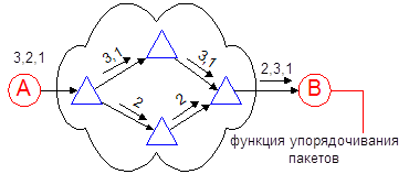 Пакеты, относящиеся к одному сообщению, могут передаваться по разным маршрутам в зависимости от того, по какому из них в данный момент они с наименьшей задержкой могут пойти к адресату. В связи с тем, что время прохождения до сети пакетов одного сообщения может быть различным (в зависимости от маршрута и задержек в УК), порядок их перехода в ОП (к получателю) может не соответствовать порядку пакетов.