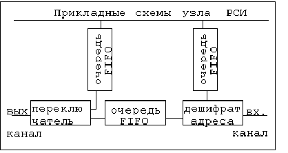 Принцип магистрали общего пользования был отклонен в начале исследований.Решили,что в новой системе узлы следует соединять индивидуальными связями,причем информация должна передаваться по каналам связи только в одном направлении.Узел получает информацию из входного канала в дешифратор адреса.Если сообщение адресовано данному узлу,оно через дешифратор поступает в промежуточную память FIFO с очередью типа "первым вошло-первым вышло" и далее проходит на прикладные схемы узла для обработки,например, микропроцессорами и транспьютерами.Если сообщение адресовано другому узлу,оно через проходную FIFO и переключатель передается в выходной канал к следующему узлу.Если ранее уже началась выдача обработанной информации из выходной FIFO,передача проходящей информации задерживается до окончания выдачи. Можно заметить,что узлы РСИ действуют подобно железнодорожному узлу:если со станции выходит поезд и выходной путь занят,то приходящий поезд направляют на запасной путь для отстоя;если же состав адресован именно этому узлу,то его вагоны сортируют и подают на разгрузочные пути. Последний из цепочки узлов РСИ соединяется с первым узлом-образуется колечко из нескольких узлов связей. Наименьшее колечко состоит из 2х узлов.Кольцеобразная структура позволяет любому узлу получать подтверждение в приеме своего сообщения.Для этого адресованный узел сразу же после приема сообщения вырабатывает эхо-сообщение и передает его в выходной канал,чтобы оно прошло по колечку к узлу, вызвавшему первичное сообщение.Предусмотрены специальные узлы-агенты,имеющие выходы на боковые каналы, для соединения с другими колечками иными устройствами, выполняемыми в других стандартах.При помощи интерфейсных агентов конкретная система может быть расширена добавлением новых колечек с образованием сети произвольной конфигурации.РСИ является открытой системой, все составляющие которой работают в едином логическом протоколе и не требуют чуждых интерфейсов.