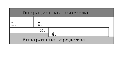 рис.7.Концептуальные понятия. 1.Операционная система 2.Уровень абстрагирования от аппаратных средств 3.BIOS МП-системы 4.Структуры данных,задающих конфигурацию МП-системы 5.Аппаратные средства В спецификации рассматриваются следующие вопросы: -создание на основе PC/AT-платформ многопроцессорных систем, которые могут исполнять существующие программы для однопроцессорных и многопроцессорных микроядерных ОС. -поддержка APIC(МП-контроллера прерываний)для обработки симметричного ввода-вывода. -возможность использовать BIOS с минимальной настройкой на конкретную МП-систему. -таблица факультативных МП-конфигураций с информацией о конфигурации. -включение ISA и других промышленных стандартов на шины, такие,как EISA,MCA,VL и PCI в МП-совместимые системы. -требования,обеспечивающие прозрачную(для программного обеспечения)реализацию вторичной шины кэша и памяти. Минимальный набор аппаратных средств,который необходим для реализации МП-спецификации,таков: -один или несколько процессоров,по набору команд совместимых с архитектурой семейств процессоров Intel 486 и Pentium; -один или несколько контроллеров APIC на процессорах Pentium 735/90 или 815/100; -прозрачные для программ подсистемы кэшей и лбщей памяти; -видимые для программ компоненты PC/AT-платформ. Документ также определяет свойства МП-систем,видимые для BIOS и ОС.Однако надо учитывать,что по мере развития технологии выполняемые BIOS функции могут изменяться. Общая структура МП-системы При построении многопроцессорной архитектуры может использоваться одна из нескольких концептуальных моделей соединения вычислительных элементов,а также множество схем взаимосвязи и вариантов реализации. На рисунке показана общая структура МП-системы,построенной на основе спецификации MPS 1.1.В нее входит сильно связанная архитектура с общей памятью с распределенной обработкой данных и прерываний ввода-вывода.Она полностью симметрична; т.е.все процессоры функционально идентичны и имеют одинаковый статус,и каждый процессор может обмениваться с каждым другим процессором.Симметричность имеет два важных аспекта:симметричность памяти и ввода-вывода. Память симметрична,если все процессоры совместно используют общее пространство памяти и имеют в этом пространстве доступ с одними и теми же адресами.Симметричность памяти предполагает,что все процессоры могут исполнять единственную копию ОС.В таком случае любые существующие системы и прикладные программы будут работать одинаково,независимо от числа установленных в системе процессоров. Требование симметричности ввода-вывода выполняется,если все процессоры имеют возможность доступа к одним и тем же подсистемам ввода-вывода(включая порты и контроллеры прерывания),причем любой процессор может получить прерывание от любого источника.Некоторые МП-системы,имеющие симметричный доступ к памяти,в то же время являются асимметричными по отношению к прерываниям устройств ввода-вывода,поскольку выделяют один процессор для обработки прерываний.Симметричность ввода-вывода помогает убрать потенциально узкие места ввода-вывода и тем самым повысить расширяемость системы. Системы,удовлетворяющие МП-спецификации,обладают симметричностью памяти и ввода-вывода,что позволяет обеспечить расширяемость аппаратных средств,а также стандартизовать программные средства.