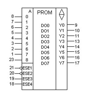 Мы для своего микропроцессорного комплекта выберем наиболее простой тип ПЗУ это программируемое постоянное запоминающее устройство КР556РТ17 емкостью 4 кбит (512 х 8) с тремя состояниями на выходе;