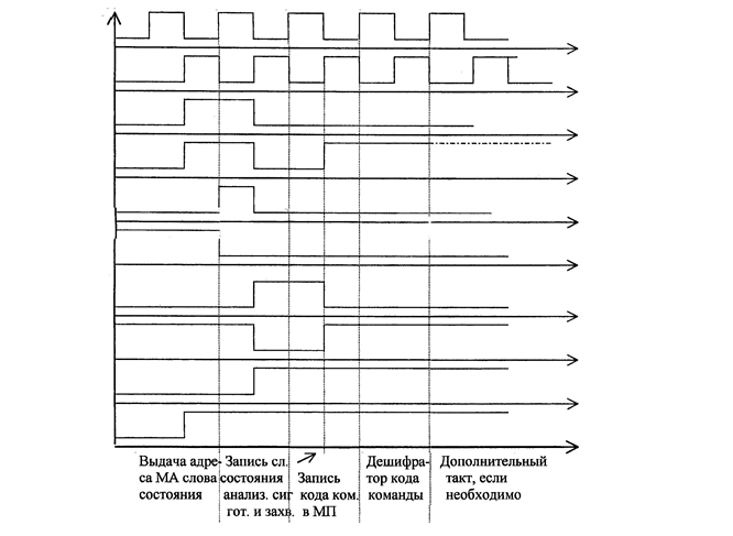 Отрицательный сигнал STSTB, длительность которого равна од--ному периоду частоты опорного генератора, формируется микросхемой КР580ГФ24 при поступлении на ее вход с микропроцессора КР580ВМ80А сигнала SYNC “Синхронизация”, свидетельствующего о начале машинного цикла.