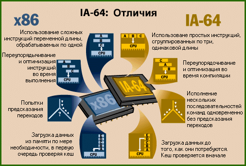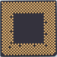 Разрядность микропроцессора обозначается m/n/k/ и включает: m - разрядность внутренних регистров, определяет принадлежность к тому или иному классу процессоров; n - разрядность шины данных, определяет скорость передачи информации; k - разрядность шины адреса, определяет размер адресного пространства. (Например, микропроцессор i8088 характеризуется значениями m/n/k=16/8/20) 3. Объем адресуемой памяти – максимальный объем памяти, который может обслужить микропроцессор. 32-х разрядный микропроцессор может обслужить 64 Гб (4х109 байт) памяти, а 64-х разрядный микропроцессор может обслужить 64 Тб (64х1012 байт) памяти. 4. Набор дополнительных инструкций (Instruction Set) - применяются в современных CISC-микропроцессорах и способны значительно ускорить их работу. Естественно только при условии поддержки данных наборов со стороны приложения. Все традиционные современные процессоры поддерживают набор инструкций MMX, который был самым первым (разработан корпорацией Intel еще в 1997 году). MMX расшифровывается как MultiMedia eXtensions (мультимедийные расширения). Он представил дополнительные возможности, ориентированные на обработку цифрового изображения и звука. В основе технологии лежит концепция (микроархитектура) SIMD (Single Instruction Many Data – "одна команда, много данных"), когда при помощи одной инструкции одновременно обрабатывается несколько элементов данных. SSE, SSE2, 3DNow! - дальнейшее развитие этой идеи. Микропроцессоры Intel Pentium 3 поддерживают SSE, а Pentium 4 и AMD Athlon 64 еще и SSE2 (это относится и к соответствующим микропроцессорам Intel Celeron). Процессоры AMD Athlon и Duron поддерживают наборы инструкций 3DNow!Professional и MMX, в Athlon XP была добавлена поддержка SSE (на уровне микрокода ядра). Технологический процесс производства (Process Technology) – техпроцесс определяет размеры элементов и соединений между ними в интегральной схеме. Измеряется в микрометрах (0,35 μm; 0,25 μm;…). Чем меньше число, тем меньше сам кристалл, следовательно, меньше потребляемая мощность и тепловыделение. А ведь тепловыделение сильно препятствует увеличению частоты, на которой работает микропроцессор. Где-то в 1997 году произошел переход с 0,25 μm на 0,18 μm технологию производства. А уже в 2001 году произошел переход на 0,13 μm технологию, что позволило намного увеличить частоту. Вот-вот произойдет переход на 0,09 μm. Производительность микропроцессора определяется параметрами: 1. Тактовая частота (Частота ядра) (Internal clock) – это количество электрических импульсов в секунду. Каждый импульс несет в себе некую информацию - это могут быть команды процессору или данные памяти. Тактовая частота задается кварцевым генератором - одним из блоков, расположенных на материнской плате. Тактовая частота кварцевого генератора выдерживается с очень высокой точностью и лежит в мега или гигагерцовом диапазоне. Один герц - один импульс, один мегагерц - один миллион импульсов, один гигагерц - тысяча мегагерц. Микропроцессор, работающий на тактовой частоте 800 МГц, выполняет 800 миллионов рабочих тактов в секунду. В зависимости от сложности обрабатываемой команды процессору для выполнения задачи необходимы сотни и тысячи тактов. Но для выполнения простых операций бывает достаточно одного такта. Чем выше тактовая частота ядра, тем выше скорость обработки данных. Современные микропроцессоры работают на частотах от 300 МГц до 4,7 ГГц. 2. Частота системной шины (System clock или Front Side Bus) – си