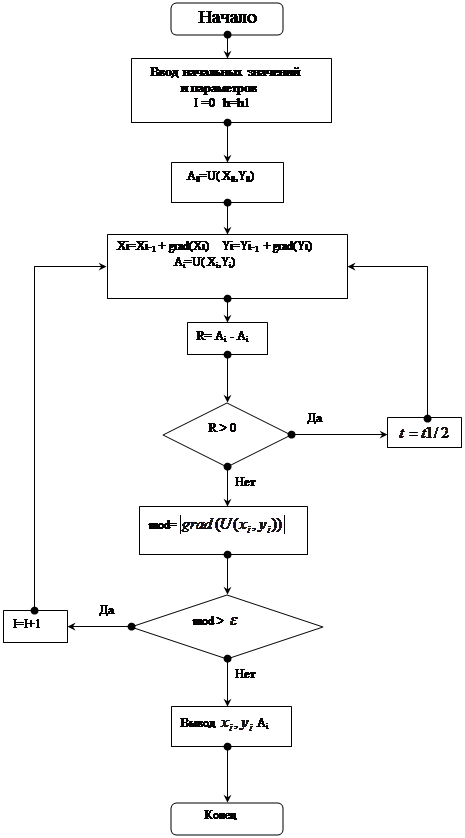 минимизации: Блок-схема поиска минимума функции двух переменных