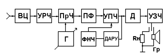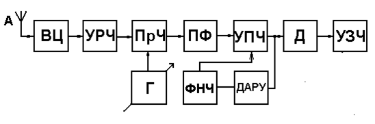 Структурные схемы приемников АМ и ЧМ сигналов приведены на рисунке 1.3.1, а и б соответственно. Из схем видно, что на функциональном уровне различия не очень существенны: для обоих систем характерно наличие таких узлов, как: входная цепь, усилитель радиочастоты, смеситель, гетеродин, узкополосный фильтр, усилитель промежуточной частоты, усилитель звуковой частоты, оконечное устройство. Однако существуют отличия: в приемнике ЧМ сигналов отсутствует система автоматической регулировки усиления (АРУ) и амплитудный детектор, в то же время установлены система автоподстройки частоты (АПЧ) и частотный детектор. На более глубоком уровне сравнения различия состоят и в том, приемники работают в разных диапазонах частот (АМ приемник – в области ДВ,СВ,КВ; ЧМ приемник – в УКВ диапазоне) и имеют различные промежуточные частоты ( как правило, 465 кГц для приемников АМ и 10,7 МГц – для приемников ЧМ). Такая разница в промежуточных частотах обусловлена тем, что ЧМ сигнал имеет гораздо большую занимаемую полосу – до 250 кГц, а АМ-сигнал – около 6 кГц. Также требования, предъявляемые к усилителю звуковых частот при АМ приеме гораздо ниже (усилитель должен иметь полосу воспроизводимых частот 0,3-6,4 кГц), чем при ЧМ-приеме (полоса 50-10000 Гц). Таким образом, полноценная переделка (с получением всех характеристик, существующих существующим стандартам) приемника АМ сигналов в приемник ЧМ сигналов не имеет смысла, т.к. придется не модернизировать, а заново изготовлять все блоки, за исключением блока питания и выходного устройства. Однако в данном случае нам не требуется получить приемник ЧМ сигналов, который соответствовал бы существующим требованиям, а необходим соответствовал бы существующим требованиям, а необходим лабораторный стенд, который бы