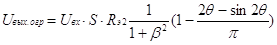 - по заданным dэ1, Сэ1 и fo рассчитать сопротивление первого контура Rэ1, затем рассчитать значения R’э, d’э, и β1 для всех выбранных значений cos θ по формулам: где dэ1 – эквивалентное затухание первого контура с учетом влияния шунтирующих диодов; dэ2 – эквивалентное затухание второго контура. - по найденным Uвых.огр., R’э, β и заданной крутизне транзистора VT1 рассчитать ряд значений амплитуд входного напряжения, соответствующих выбранным cos θ и, следовательно, Uвых.огр., пользуясь соотношением