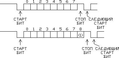 (1)-контрольный бит, задается программно. Рис. 2-10 Диаграмма обмена по SCI. Рассмотрим регистры, входящие в интерфейс. Регистр скорости передачи данных (BAUD), расположенный по адресу 0DH, используется для задания скорости обмена по интерфейсу. Из таблиц 2-3 и 2-4 можно определить скорость приема/передачи информации, исходя из частоты кварцевого генератора. Регистр скорости приема/передачи