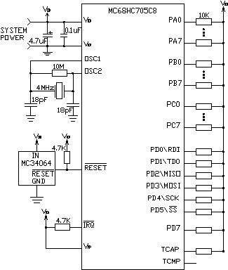 Рис. п3 Стандартная схема включения MC68HC05705B8. |