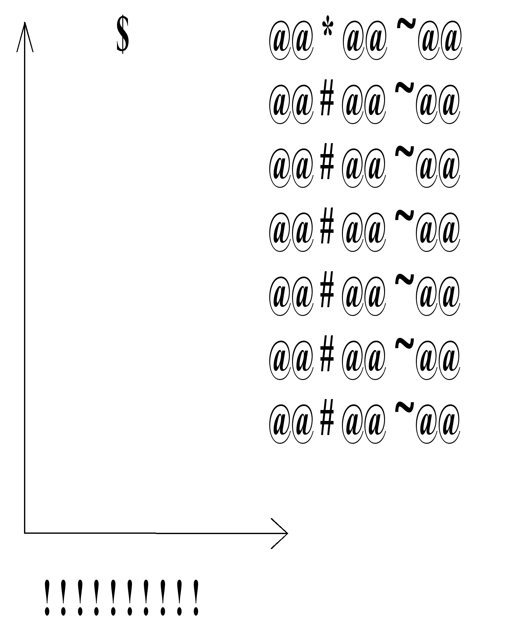 рис. 9 Распределение служебных мест на экране для редактирования параметров измерения. Специальные символы, которые указывают местоположение будущих значений.