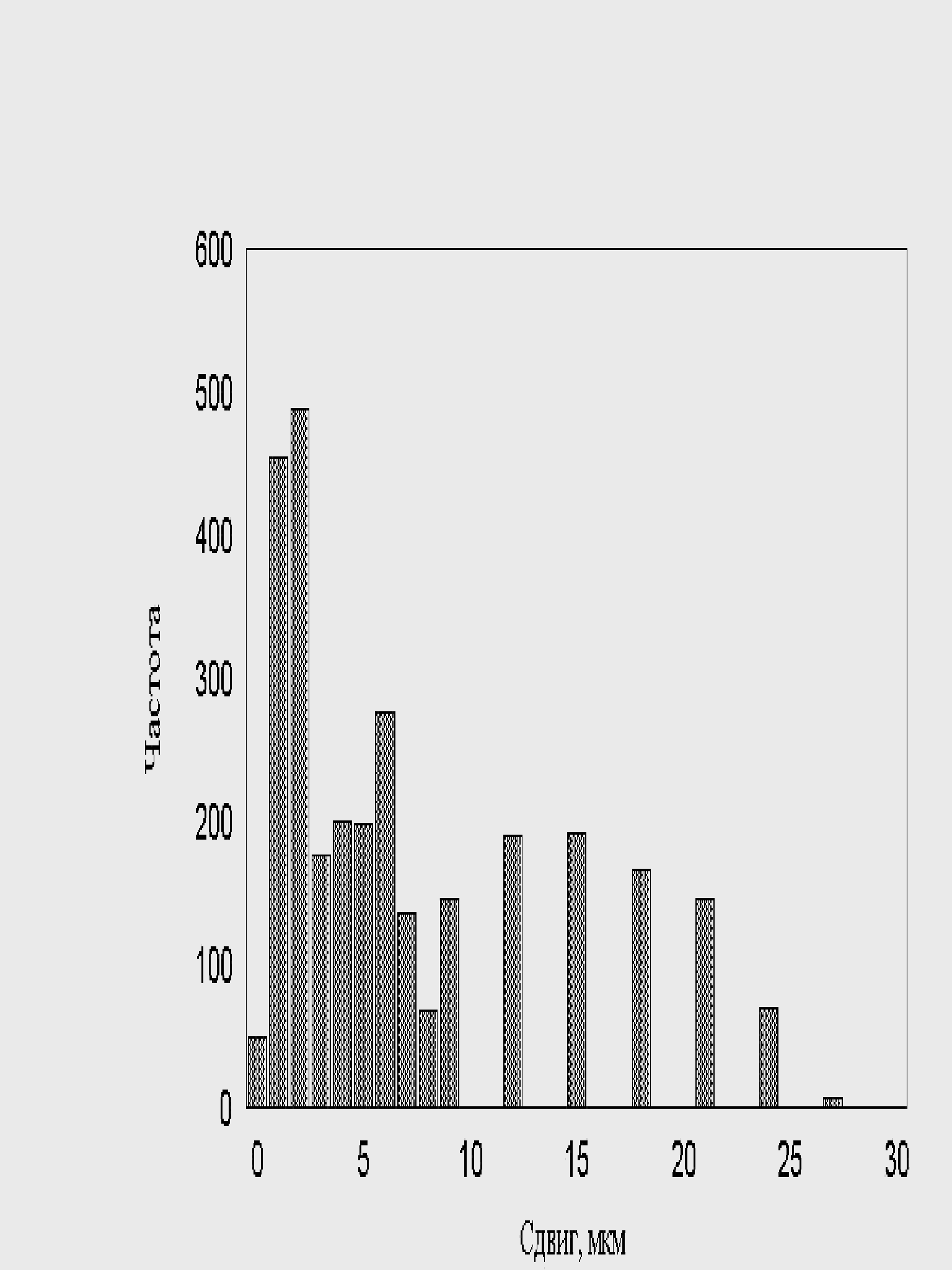 рис. 17 Гистограмма минутных сдвигов. Три группы клеток (max_step 3, 10, 30 соотношение клеток 15:30:55)