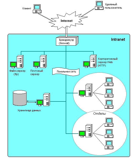 То, что мы видим на экране, – внутренняя информация, недоступная извне. Кроме браузеров информация может содержаться и в специально разработанных приложениях, работающих в среде Intranet, если в этом есть необходимость: