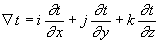является вектором, "градиентом t", указывающим в каждой точке величину и направление наибольшего возрастания t. Будучи
