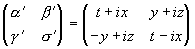 Правило перемножения кватернионов содержится в этом правиле в качестве частного случая. В самом деле, будем понимать под i обычный квадратный корень из -1 и положим