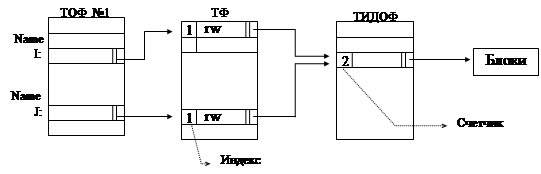 Отличие файла-каталога от обычных файлов пользователя заключается в содержимом поля типа файла в ИД. Для корневого каталога поле родителя будет ссылаться на него самого. Теперь схематически рассмотрим, как могут использоваться полные имена и структура каталогов. В системе, в каждый момент времени работы пользователя определен текущий каталог, то есть каталог и весь путь от корня, связанный с этим каталогом, который по умолчанию подставляется ко всем именам файлов, не начинающихся с символа «/». Если текущий каталог D, то можно говорить просто о файлах F и G, а если надо добраться до файла В, то необходимо использовать полное имя или специальный файл «..», т.е., в данном случае, конструкцию «../В». Мы ссылаемся на файл «..» - это означает, что нужно прочесть ИД родителя и по нему добраться до содержимого каталога А. Затем в файле-каталоге А надо выбрать строку с именем В и определить ИД файла В, а затем произвести открытие файла. Вся эта операция довольно трудоемка, однако учитывая то, что файлы открываются не часто, это не будет сказываться на скорости работы системы. Мы говорили, что с одним и тем же содержимым может ассоциироваться несколько имен, т.е. одновременно могут быть открыты файлы с одним и тем же ИД. Возникает проблема - как синхронизируется работа с содержимым файла в случае его открытия разными процессами или с разными именами. В UNIX-е это решается достаточно корректно (это мы рассмотрим несколько позже). Специальные файлы устройствМы уже знаем два типа файлов: файлы-каталоги и рабочие файлы, в которых хранятся данные. Есть третья разновидность - файлы устройств. Эта разновидность характеризуется типом, указанным в ИД. Содержимого у файлов устройств нет, а есть только ИД и имя. В ИД указывается информация о том, какой тип устройства ассоциирован с этим файлом: байт-ориентированное устройство или блок-ориентированное устройство. Байт-ориентированное устройство - это то устройство, обмен с которым осуществляется по одному байту (например, клавиатура). Блок-ориентированное устройство - это устройство, с которым обмен может осуществляться блоками. Также имеется поле, определяющее номер драйвера, связанного с этим устройством (у одного устройства может быть несколько драйверов, но не наоборот). Это поле, на самом деле, есть номер в таблице драйверов соответствующего класса устройств. В системе имеются две таблицы: для блок- и для байт-ориентированных устройств. Также в ИД определен некоторый цифровой параметр, который может быть передан драйверу в качестве уточняющего информацию о работе. Организация обмена данными с файламиОпределим сначала, что является низкоуровневым вводом/выводом в системе. В файловой системе UNIX-а определены некоторые специальные функции, которые называются системными вызовами. Системные вызовы осуществляют непосредственное обращение к операционной системе, то есть это функции, выполняющие некоторые действия операционной системы. Реализация системных и библиотечных функций (например, математических) в корне отличается. Если библиотечная функция будет подгружена в тело процесса, который пользуется этой библиотекой, то все действия в большинстве случаев будут выполняться в пределах этого процесса, а системный вызов сразу же передает управление операционной системе и она выполняет заказанное дейст