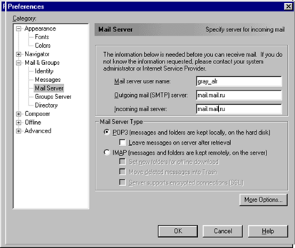 Мы произведём настройку, и изучим основные функции почтовой программы Mail Box из пакета для работы с Internet (Netscape Communicator).