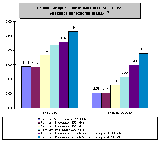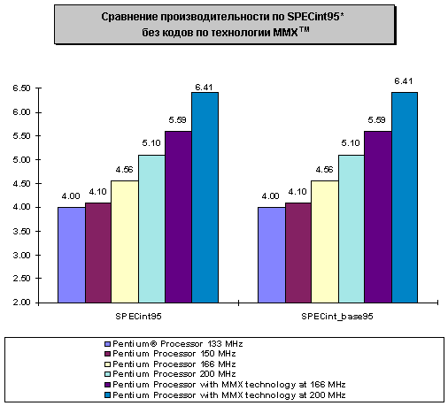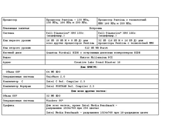 Таблица 4: Результаты тестов для Pentium Processor 200 MHz Используя формулу расчета индекса iCOMP Index 2.0, значения из таблицы 3 и таблицы 4, самостоятельно получим индекс производительности iCOMP Index 2.0 для процессора Pentium Processor 200 MHz.