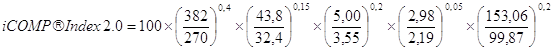 Таблица 2: Соотношение 16 и 32 битных приложений в iCOMP Index и iCOMP Index 2.0 Существуют три основные тенденции развития рынка и роста производительности, которые нашли свое отражение в формуле расчета производительности. 1. Развитие современных эталонных тестов, которые наилучшим образом отражают реальную работу популярных приложений. 2. Ускорение перехода к 32-битным операционным системам и приложениям на настольных системах. 3. Внедрение средств мультимедиа, телекоммуникаций и 3-мерной графики. Значения индекса iCOMP 2.0 основаны на результатах оценки производительности процессора при выполнении целочисленных операций, операций с плавающей запятой, обработки мультимедиа. В свою очередь, оценка производительности операций с мультимедиа складывается из четырех компонентов - производительности аудиосистемы, производительности видеосистемы, производительности системы обработки изображений и производительности трехмерной графики. В общем виде формула подсчета индекса представлена ниже: