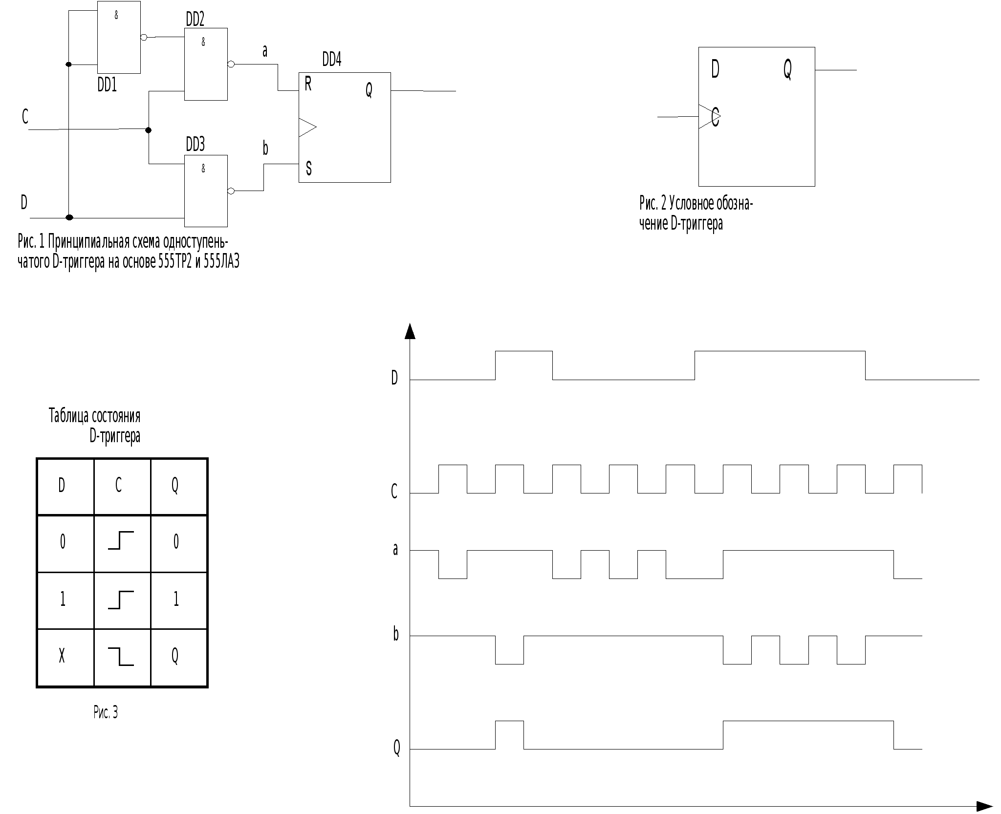 ЗАДАЧА № 17. Пpедложите на основе асинхронного триггера типа 555 ТР2 и необходимых логических элементах синхронный одноступенчатый DV-триггер с прямым статическим регулированием. В ответе пpивести: обоснование основных технических решений при построении заданного триггера; функциональную схему; таблицу состояний; условное графическое обозначение; кpаткое описание принципа действия на временную диаграмму.