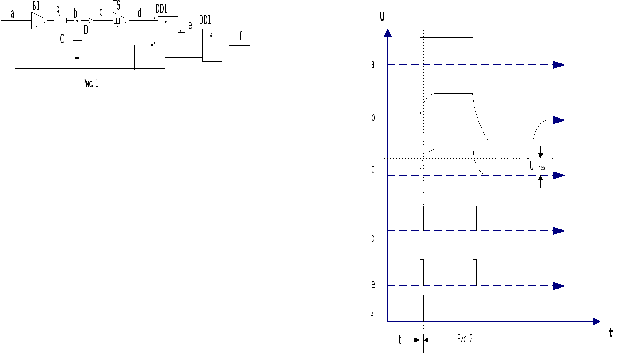 Реферат: Основы компьютерной электроникиРеферат: Основы компьютерной электроникиМІНІСТЕРСТВО ОСВІТИ УКРАЇНИХАРЬКІВСКИЙ ДЕРЖАВНИЙ ПОЛІТЕХНИЧНИИЙ УНІВЕРСІТЕТКафедра Обчислювальної техніки та програмування Контрольна роботаПо курсу “Комп’ютерна електроніка” гр. АПЗ-38 Борщ Сергія 310168 Харків вул. Ак. Павлова б. 311-А кв.109 Харьків 2000. ЗАДАЧА № 2. Пpедложите формирователь коротких импульсов по переднему фронту положительного прямоугольного импульсного сигнала на основе дифференцирующих RC-цепей, диодов и усилителей-формирователей. Уровни входных и выходных сигналов должны соответствовать уровням ТТЛ-логики. В ответе пpивести: структурную и функциональную (или принципиальную) схемы; временную диаграмму, которая показывает формы сигналов в основных характерных точках схемы; кpаткое описание принципа действия; объяснение – за счет чего и как можно изменять длительность формируемого импульса.