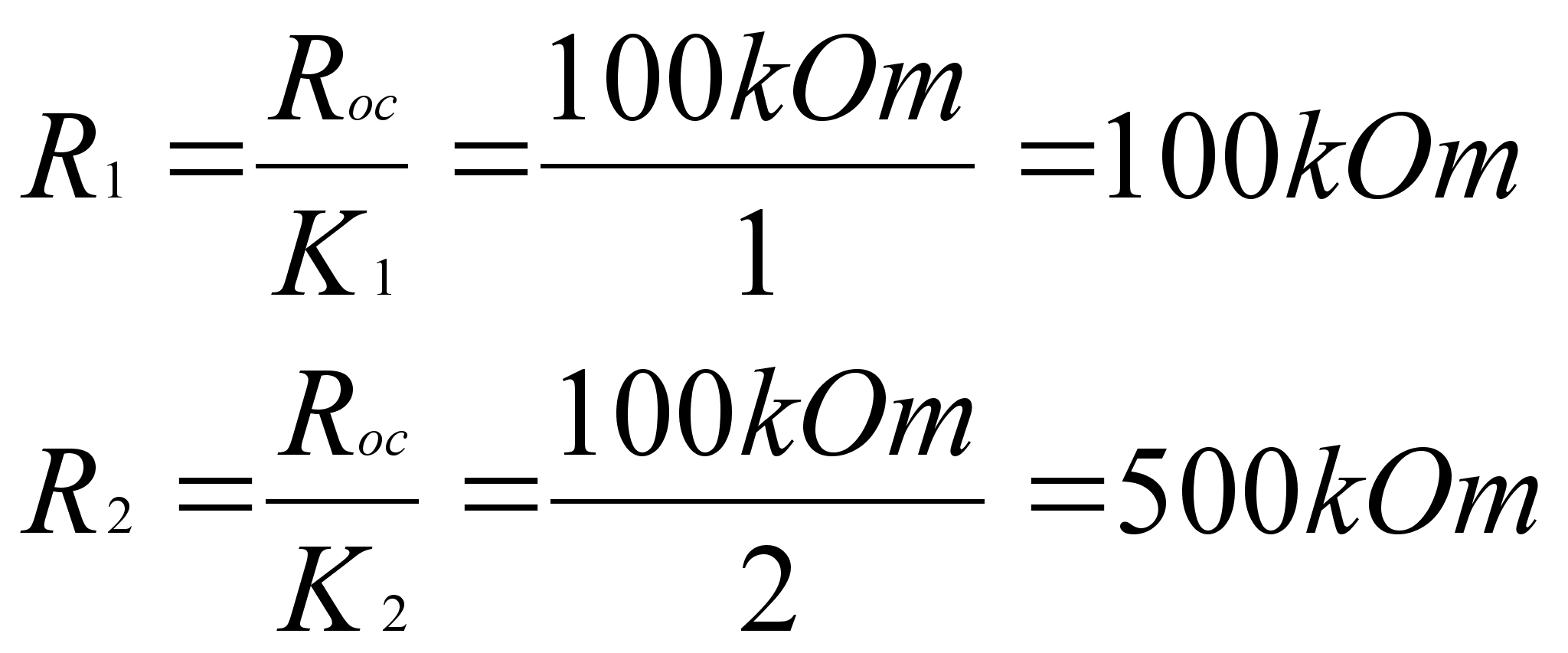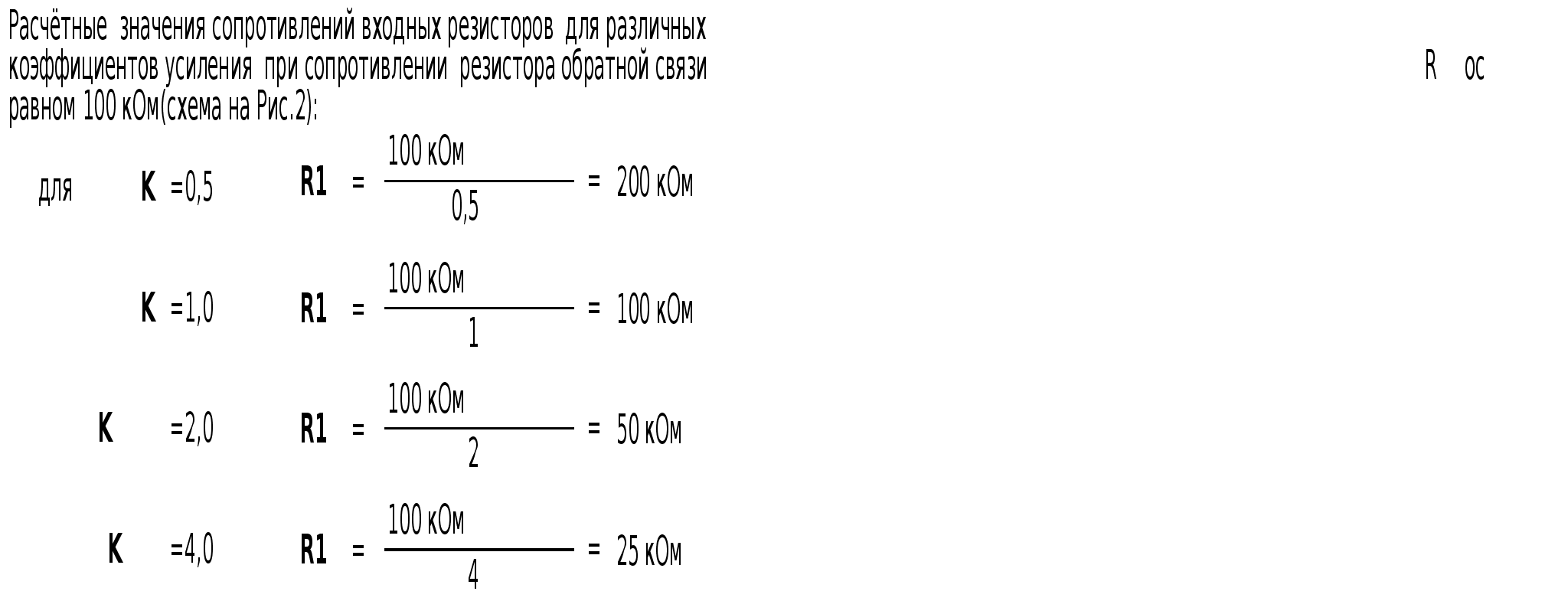 K1=1 K2=2 По заданным коэффициентам проводится расчет входных резисторов R1 и R2