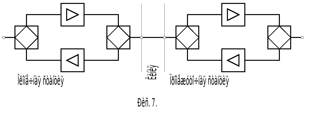 Здесь используется одна двухпроводная цепь, по которой передача сигналов в двух направлениях осуществляется в разных спектрах частот. Направляющие фильтры соответственно низких высоких частот служат для разделения спектров частот двух направлений передачи.