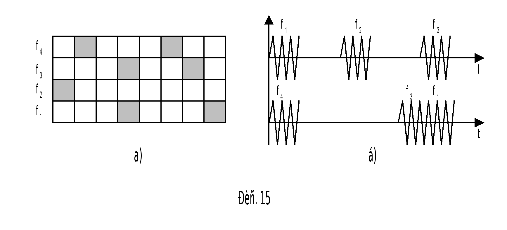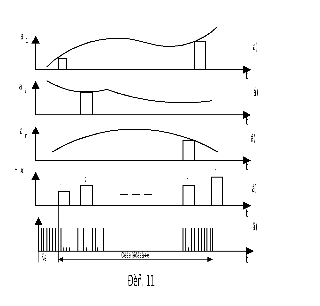 а) сигнал в 1-м канале; б) сгнал во 2-м канале; в) сигнал в n-м канале;