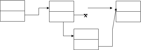 В схеме каждый элемент разбит на два логических поля: Curr – обозначает все содержательные данные, и Next – указатель на следующий элемент списка. У последнего элемента указатель установлен в Nil, что используется для инициализации не распределенных динамических переменных. Данный список называется односвязным, поскольку движение от элемента к элементу в нем происходит только в одном направлении. Односвязный список использован в модуле Dinamo как один из вариантов работы с динамическими структурами. Как происходит работа с элементами односвязного списка, например, вставка нового элемента? Лучше всего это можно проиллюстрировать следующим рисунком на примере односвязного списка из трех элементов.