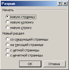 Примечание. При удалении колонтитула соответствующие колонтитулы автоматически удаляются со всех страниц документа. Однако если разбить документ на разделы и разорвать связь между ними, можно удалить колонтитулы только для некоторых разделов. 7. Вставка разрывов.