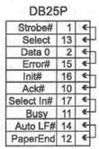 Интерфейс Centronics поддерживается большинством принтеров с параллельным интерфейсом, его отечественным аналогом является интерфейс ИРПР-М. Традиционный LPT-порт Традиционный порт SPP (Standard Parallel Port) является однонаправленным портом, на базе которого программно реализуется протокол обмена Centronics. Порт обеспечивает возможность вырабатывания запроса аппаратного прерывания по импульсу на входе АСК#. Сигналы порта выводятся на разъем DB-25S (розетка), установленный непосредственно на плате адаптера (или системной плате) или соединяемый с ней плоским шлейфом. Название и назначение сигналов разъема порта (табл. 2) соответствуют интерфейсу Centronics. Таблица 2. Разъем стандартного LPT-порта