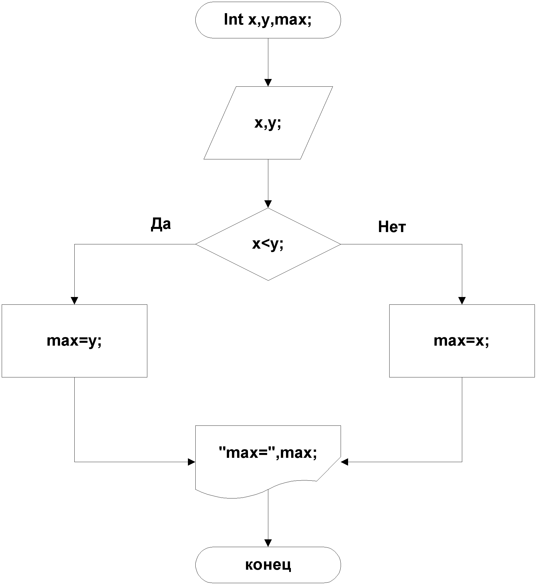 Словесное описание алгоритмаДанный способ получил значительно меньшее распространение из-за его многословности и отсутствия наглядности. Рассмотрим пример на алгоритме нахождение максимального из двух значений: