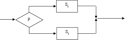 1 Функциональному блоку в языках программирования соответствуют операторы ввода и вывода или любой оператор присваивания. В виде функционального блока может быть изображена любая последовательность операторов, выполняющихся один за другим, имеющая один вход и один выход. 2. Условная конструкция. Этот блок включает проверку некоторого логического условия (P), в зависимости от которого выполняется либо один (S1), либо другой (S2) операторы: