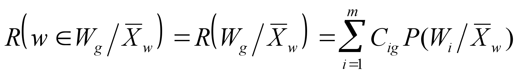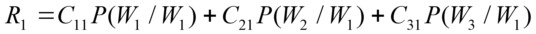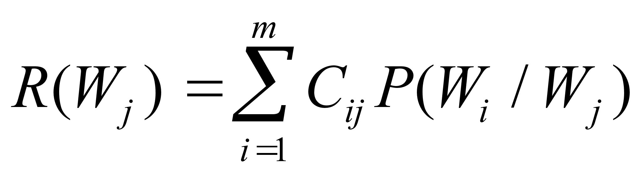 Теперь поймем, что если априорная вероятность отнесения объекта к i-му классу, в то время как он принадлежит к j-му классу (то есть, априорная вероятность ошибки) равна P(Wi /Wj ), то среднее значение платы за ошибочную классификацию всех m объектов в системе распознавания определяется как условное МОЖ потерь (зависимость от Wj