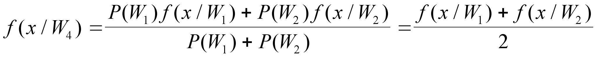 Здесь обозначен средний риск индексом "1", так как теперь рассмотрим вторую ситуацию, для которой постараемся уменьшить число классов, объединяя первый и второй классы в один - четвертый. Определим по правилам теории вероятностей ПРВ четвертого класса по ПРВ первого и второго классов