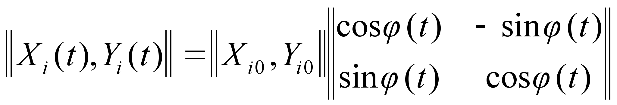 где Xio ,Yio - координаты i-ой точки статического описания объекта; Xi(t),Yi(t)- координаты i-ой точки в процессе вращения объекта. Применив указанное преобразование ко всем точкам описания объекта, получим его положение в каждый интересующий момент времени в виде соответствующих положений всех описывающих точек. Точно также, как и в предыдущем случае, при дискретном счете времени от некоторого момента t0 будем иметь: