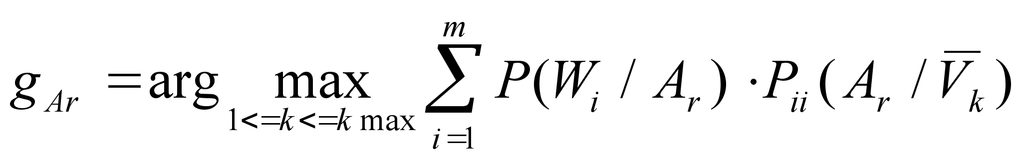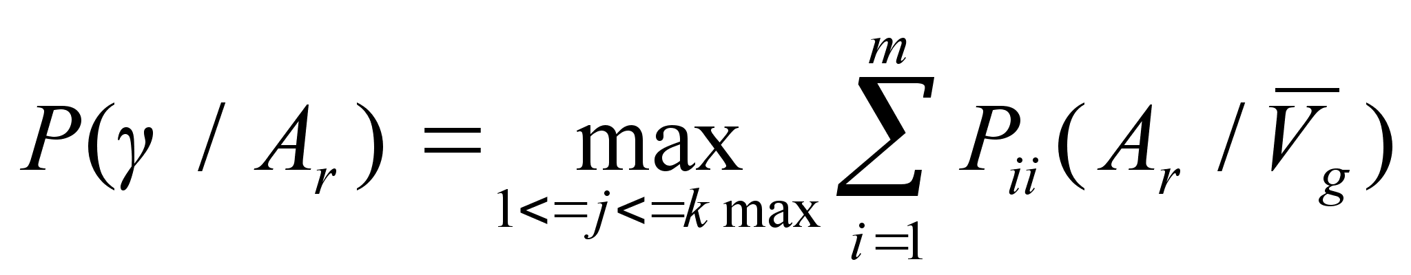 _ То есть, g-ый вектор отбора (Vg) обеспечивает максимальную вероятность правильных системных решений в алфавите Ar. Теперь матрица вероятностей соответсвует любым системным решениям для найденного оптимального набора признаков распознавания. В результате появляется возможность определить в данном алфавите класс g, объекты которого классифицируются в максимальной степени ошибочно. Соответствующую вероятность находим как максимальную вероятность ошибки: