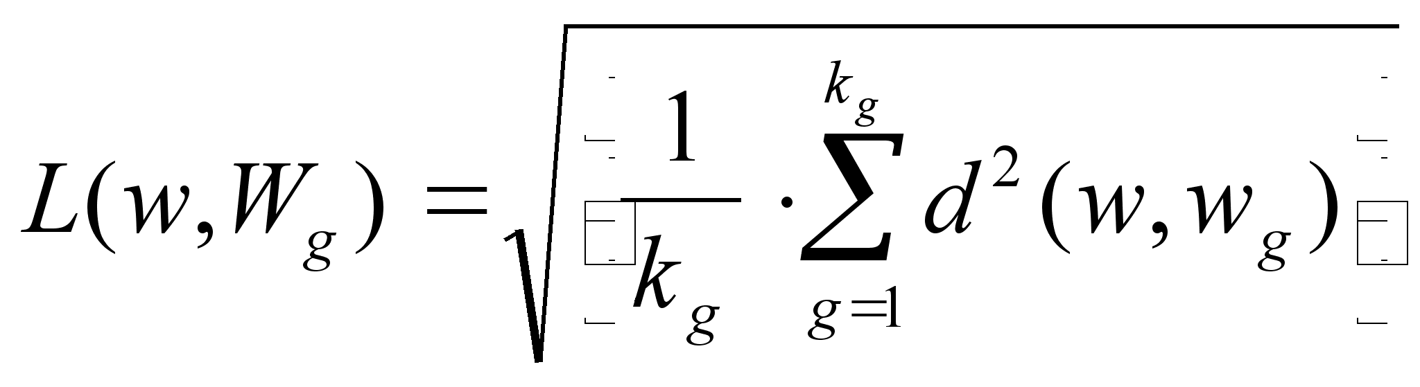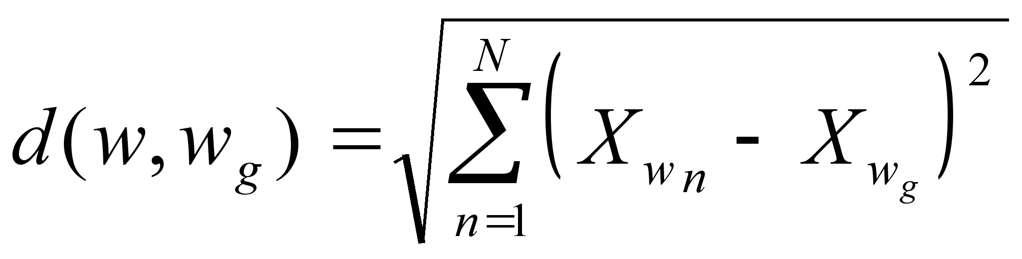 Рис.2.2 В алгоритмах распознавания, использующих детерминированные признаки в качестве меры близости, используется среднеквадратическое расстояние между данным объектом w и совокупностью объектов (w1,w2,....,wn), представляющих (описывающих) каждый класс. Так для сравнения с классом Wg это выглядит так