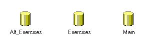 Рис. 3. Базы данных обучающей системы. При этом каждая из баз данных Exercises и Alt_Exercises содержит все учебные БД, на которых выполняются упражнения (пример одной из таких баз представлен на рис. 2). Как было отмечено ранее, Alt_Exercises содержит контрольные данные и имеет такую же структуру, как и Exercises. В БД Main (Рис.4) хранится служебная закрытая от пользователя информация. Таблица Users содержит сведения о пользователях. Правильные ответы записываются в таблицу Results. Благодаря этому можно выяснить рейтинг каждого из зарегистрировавшихся пользователей. Ответы гостей системой не сохраняются.